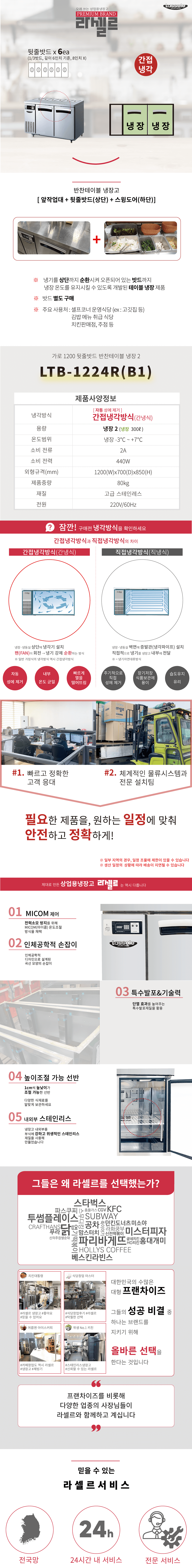 라셀르 테이블 냉장고 LTB-1224R(B1) 가로1200 냉장2칸 간냉식