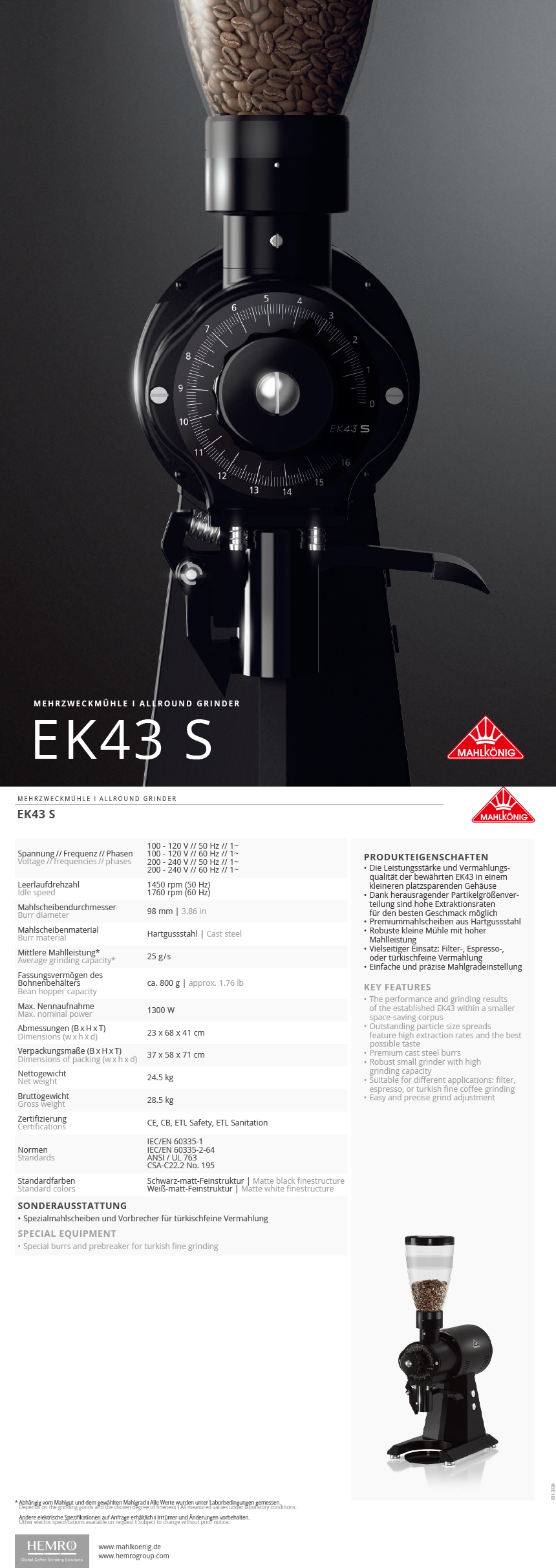 말코닉 EK43S 화이트 MAHLKOENIG 98mm 버 아로마 오토탬핑기 포함