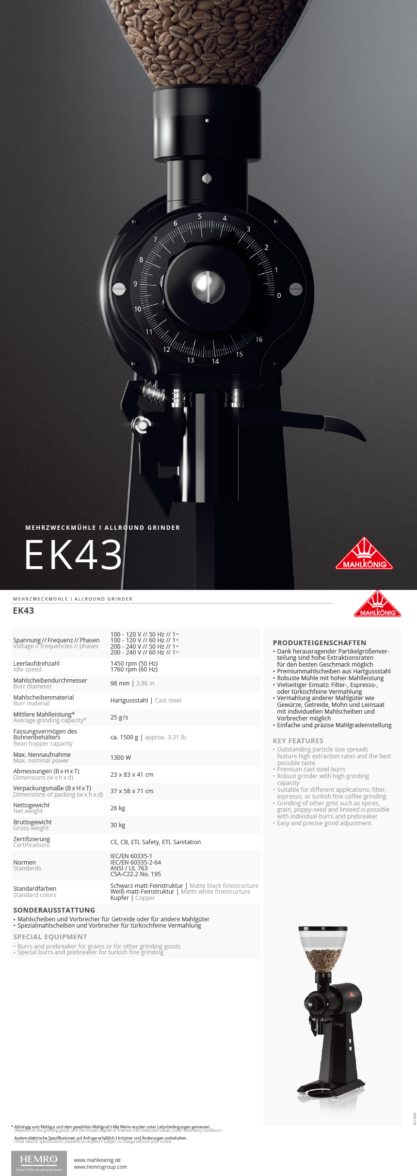 말코닉 EK43 블랙 MAHLKOENIG 98mm 버 아로마 오토탬핑기 포함