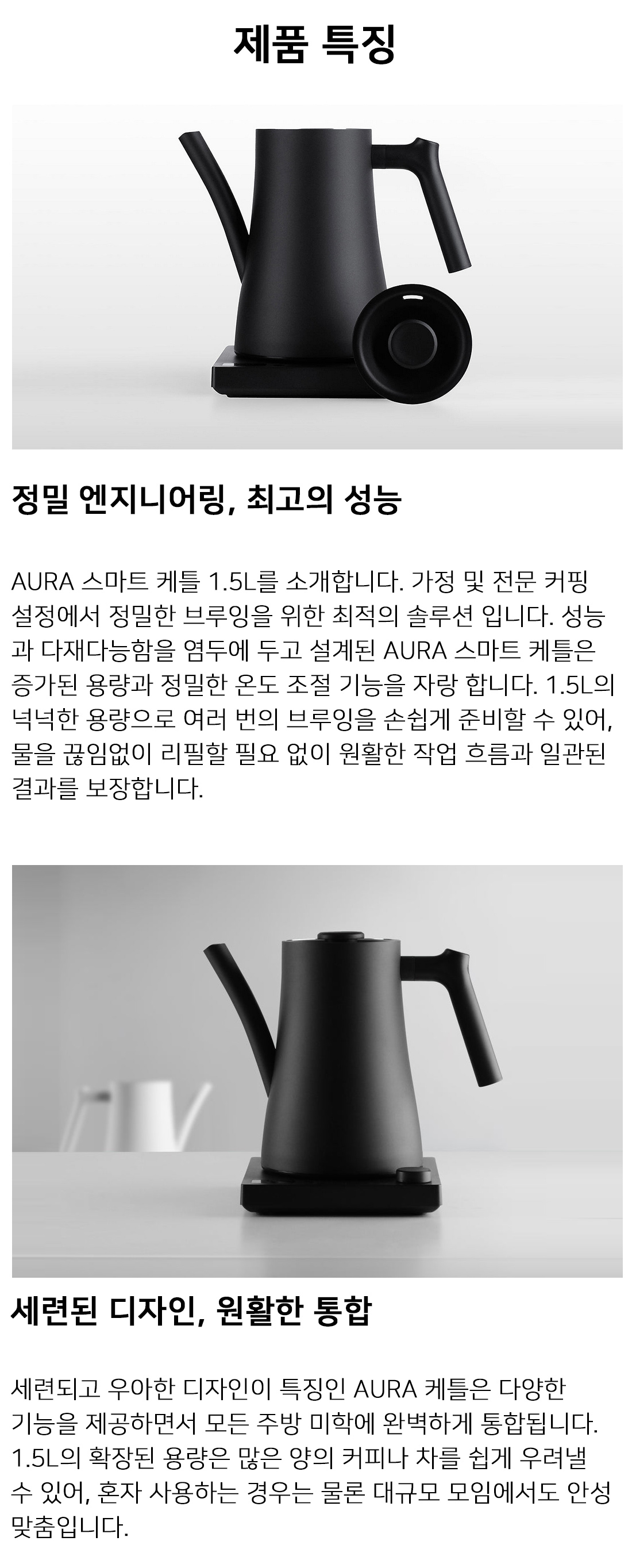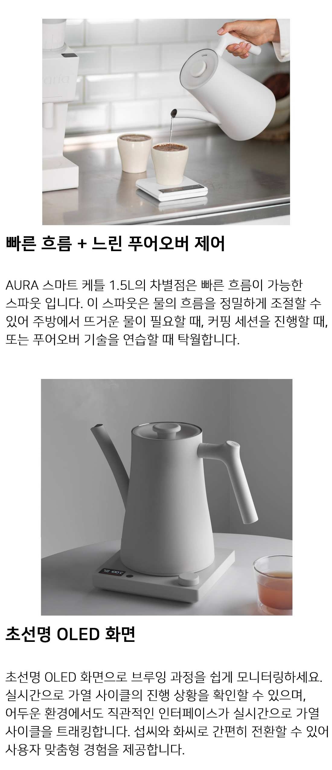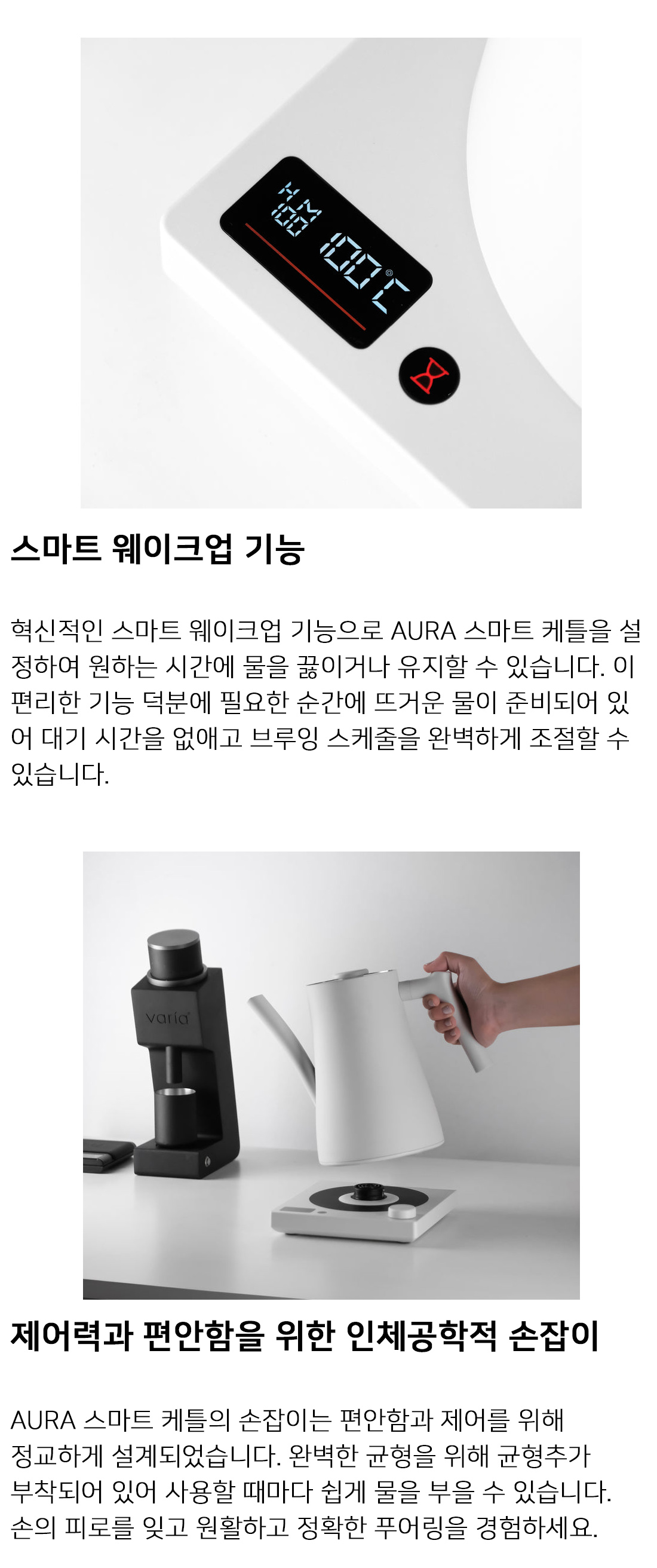 바리아 AURA 스마트 케틀 1.5L, 드립 주전자 온도조절