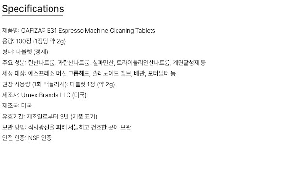 카피자 태블릿 E31 200g 어넥스 URNEX 커피머신 세정제
