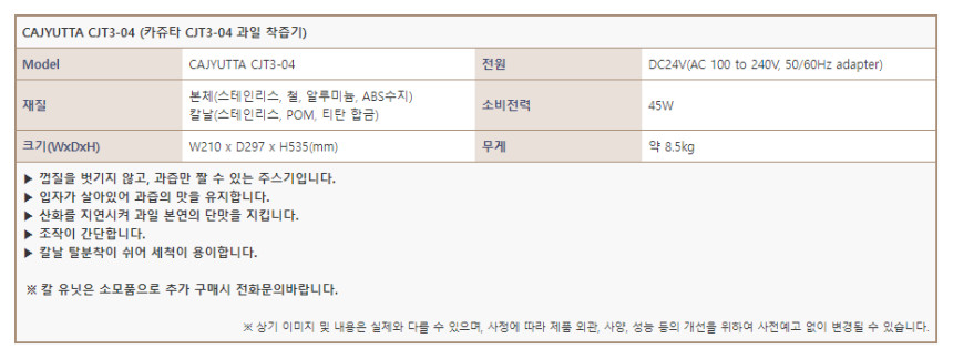 카쥬타 카주타 CAJYUTTA 생과일 주스기 자몽주스기 자몽쥬스기 자몽기계 자몽착즙기 CJT3-04 과일 착즙기