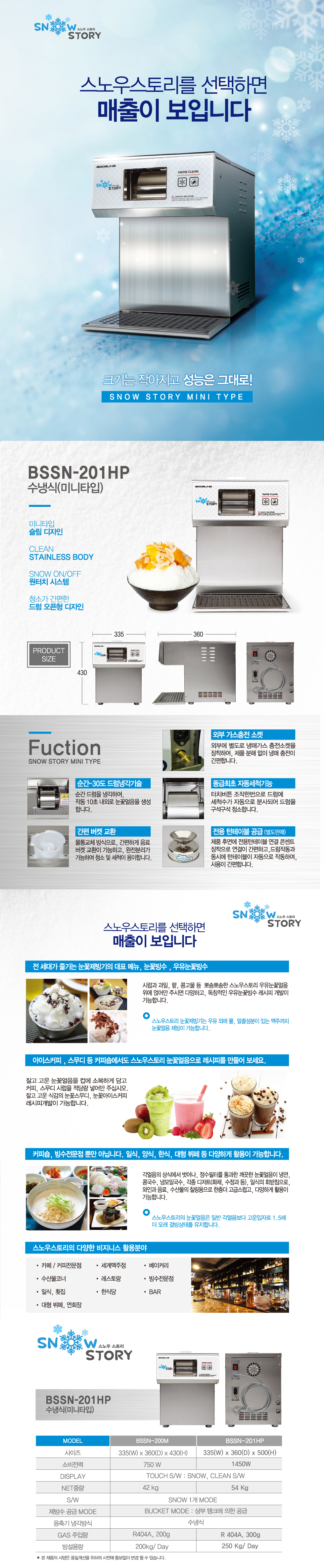 스노우스토리 눈꽃제빙기 BSSN-201HP 수냉식 / 생산량 250kg