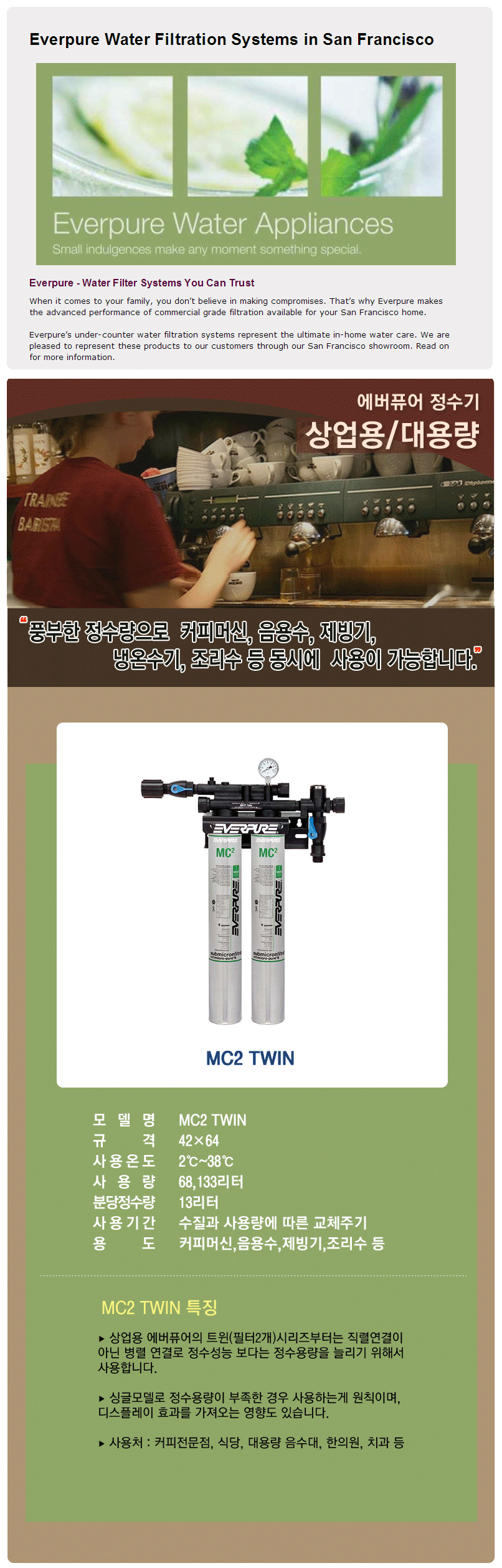 EVERPURE 에버퓨어 MC2 TWIN 정수필터/제빙기전용