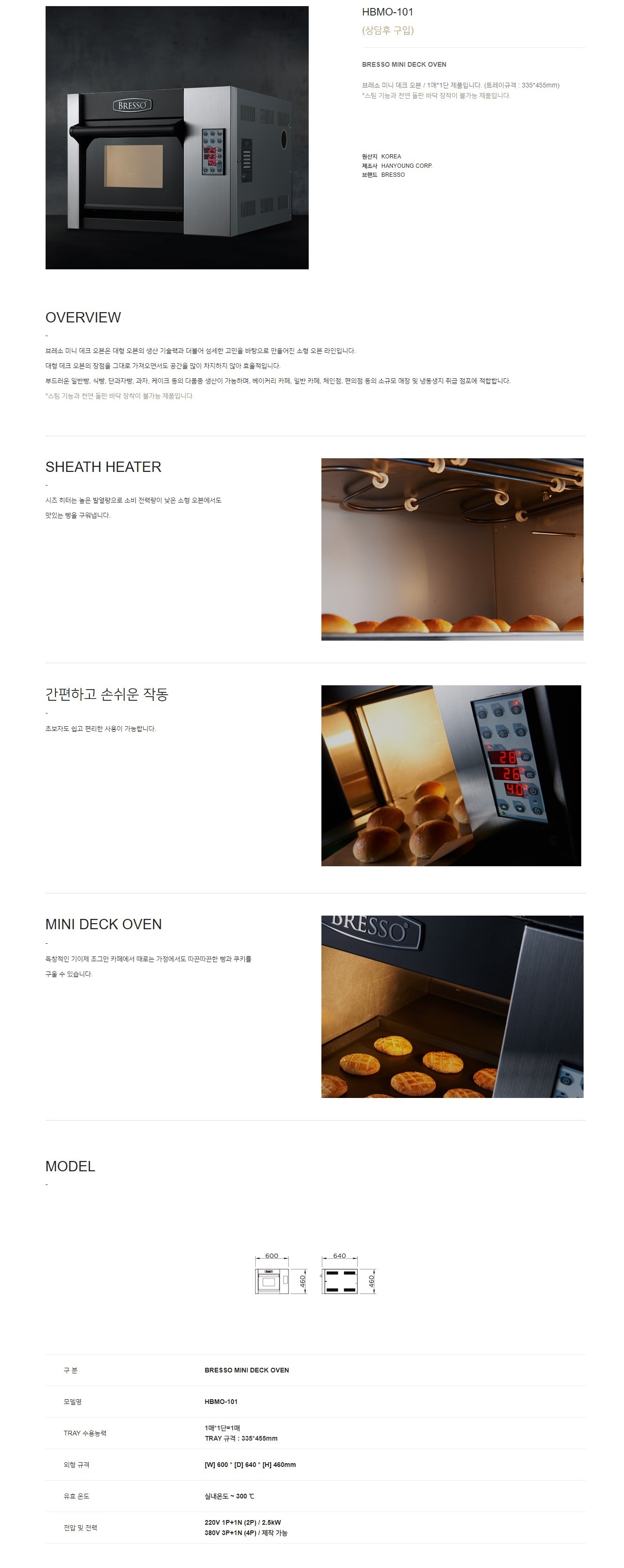 한영 브레소 미니 데크오븐 HBMO-101 1매 1단 트레이