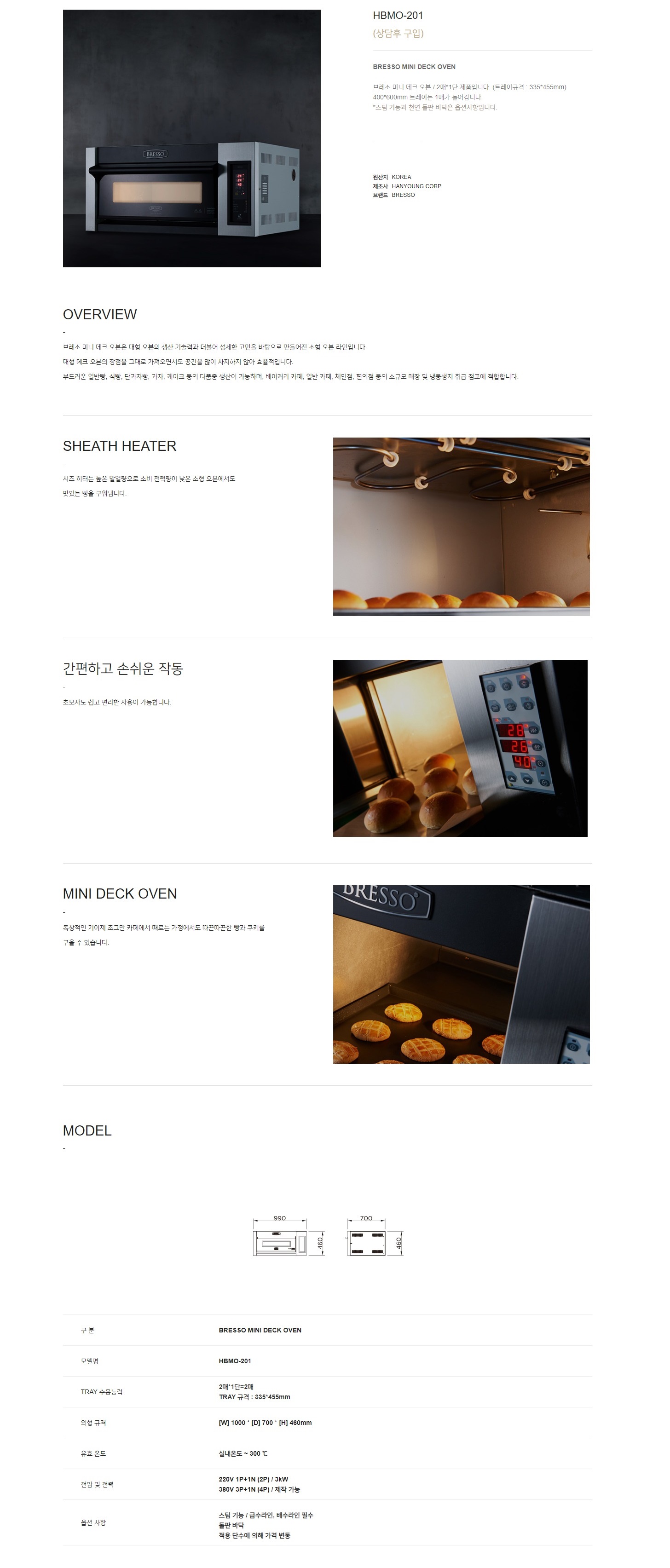 한영 브레소 미니 데크오븐 HBMO-201 2매 1단 트레이