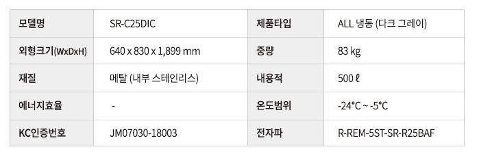 스타리온 업소용냉동고 SR-C25DI 올냉동 내부스텐 500리터급 New