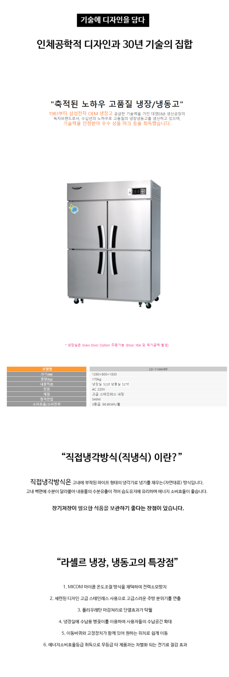라셀르 LD-1144HRF 직냉식 업소용냉장고 냉동고 / 45박스