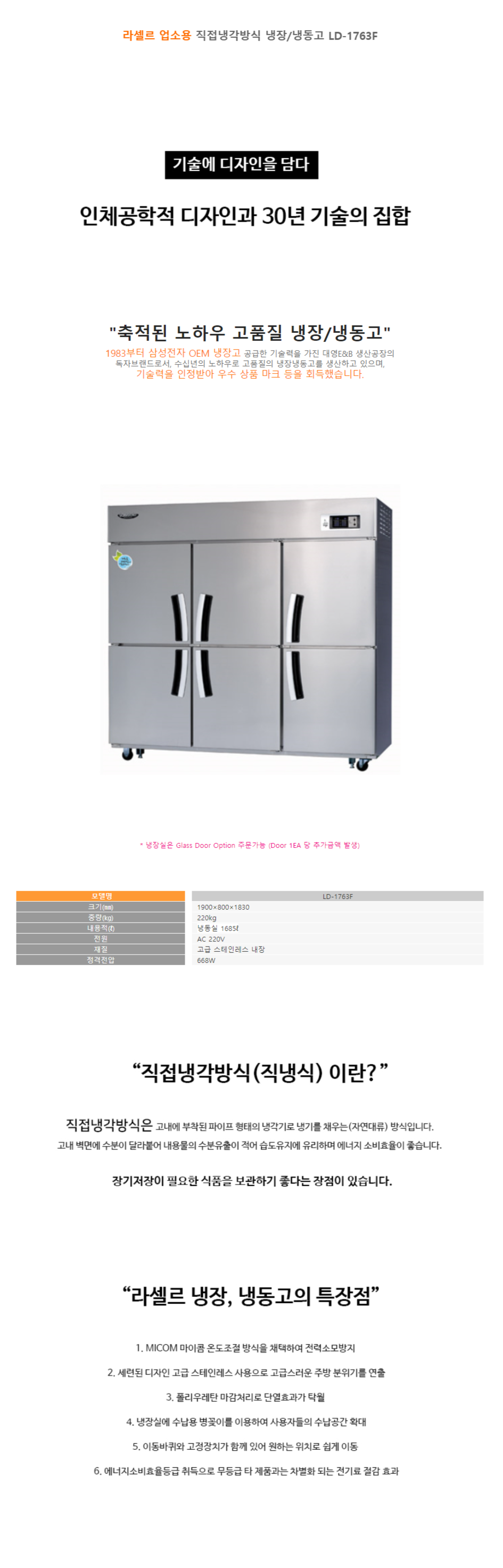 라셀르 LD-1763F 직냉식 업소용 냉동고 /65박스