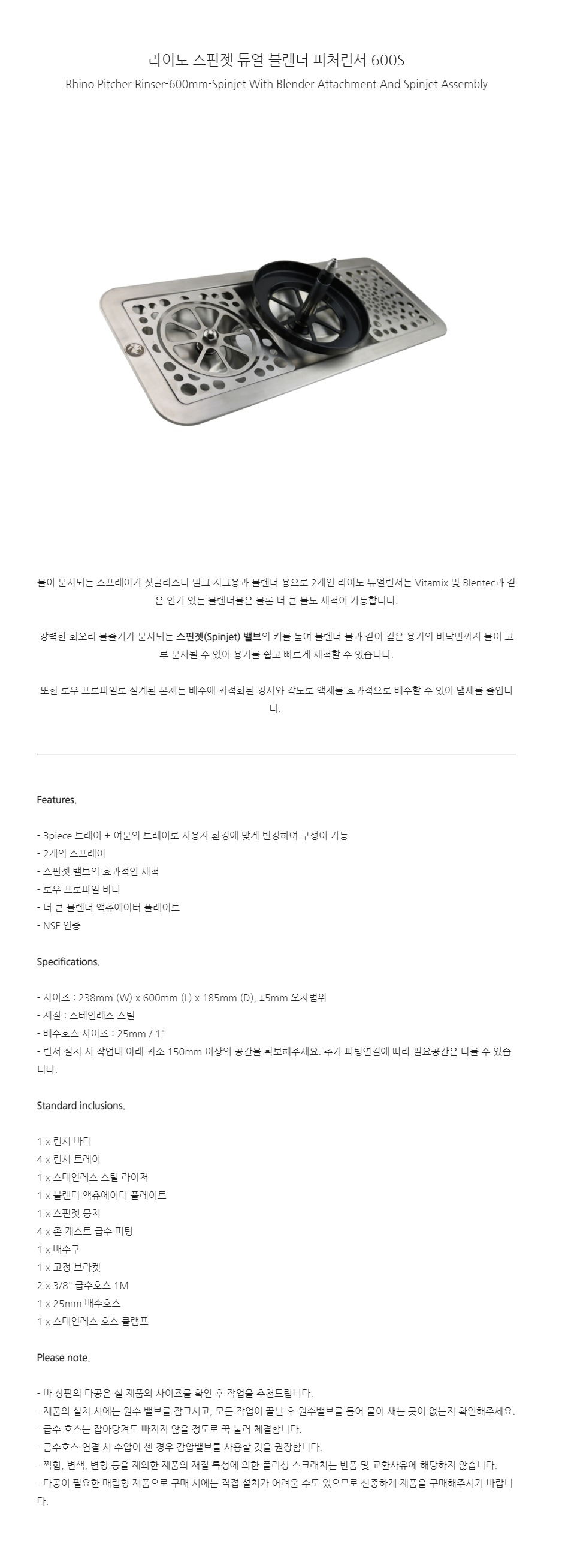 라이노 스핀젯 듀얼 블렌더 피처린서 600S
